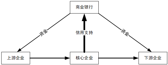 在该模式下,商业银行设计金融产品,并评估和管理相应的风险;但由于商业银行并不完全了解产业的特点,因此只能依赖于核心企业的信用去开发其上下游中小微企业并为其提供供应链金融产品,从而风险较难控制。