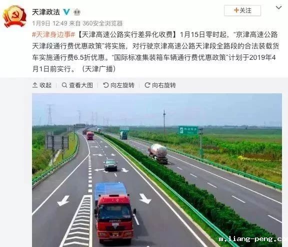 2019年1月15日零时起,京津高速公路天津段实施通行费优惠政策,对行驶京津高速公路天津段全路段的合法装载货车实施通行费6.5折优惠。