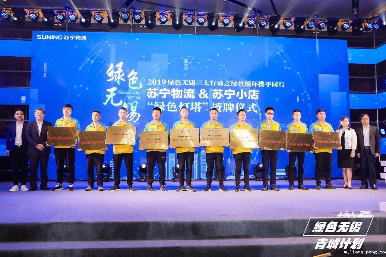 ▲苏宁物流&苏宁小店“绿色灯塔”快递包装回收站授牌