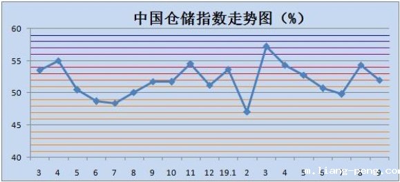 中国物流与采购联合会与中储发展股份有限公司联合调查的2019年9月中国仓储指数为52.0%,较上月回落2.3个百分点。各分项指数中,除收费价格指数、平均库存周转次数指数较上月有所回升外,其余指数均有不同程度的回落。