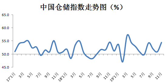 中国物流与采购联合会发布的2019年11月份中国物流业景气指数为58.9%较上月回升4.7个百分点;中国仓储指数为54.4%,较上月回升3.5个百分点。
