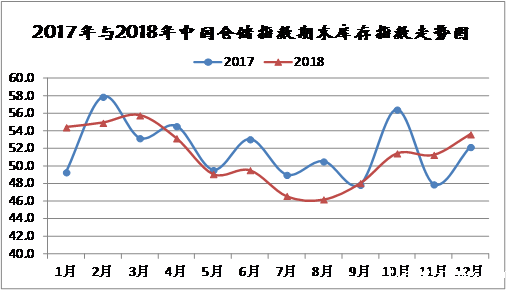 从中国仓储指数来看,2018年期末库存指数均值为51.2%,低于上年同期0.6个百分点,平均库存周转次数指数均值为52.1%,与上年同期基本持平。从数据来看,在周转效率保持高效的基础上,库存水平有所下降,表明2018年大宗商品市场库存压力得到有效缓解。