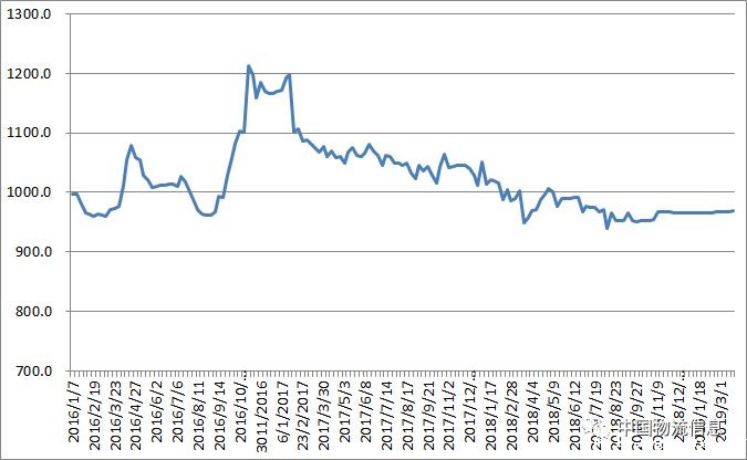 本周(2019年3月18日-3月22日),由中国物流与采购联合会和林安物流集团联合调查的中国公路物流运价指数969.02点,环比回升0.17%。