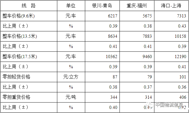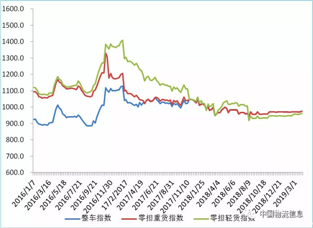 分车型看,各车型指数均小幅回升。其中,整车指数为975.69点,环比回升0.41%;零担重货指数为975.41点,环比回升0.41%;零担轻货指数为961.31点,环比回升0.36%。