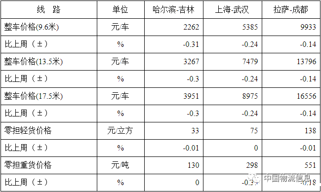 本周(2019年4月22日-4月26日),由中国物流与采购联合会和林安物流集团联合调查的中国公路物流运价指数985.53点,环比回落0.03%。