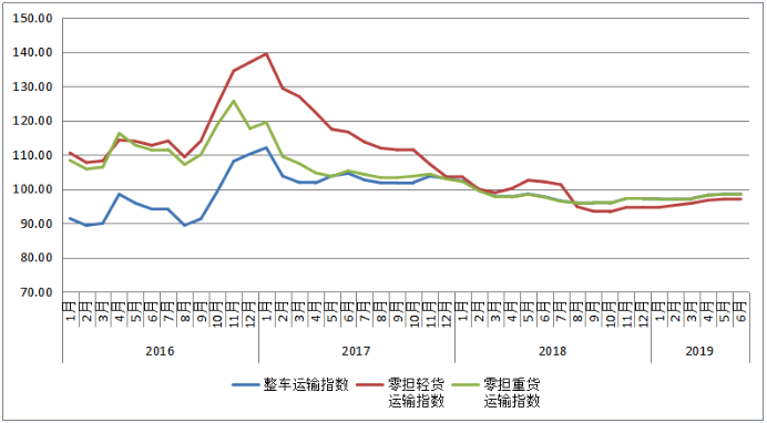 表1 2019年6月中国公路物流运价指数表