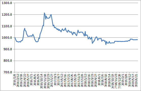 本周(2019年7月1日-7月5日),由中国物流与采购联合会和林安物流集团联合调查的中国公路物流运价指数980.4点,环比回落0.06%。