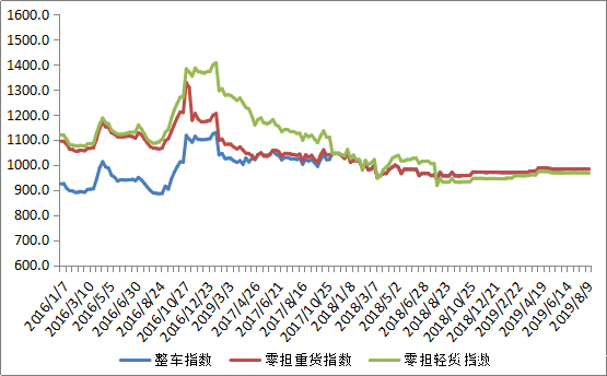本周(2019年8月12日-8月16日),由中国物流与采购联合会和林安物流集团联合调查的中国公路物流运价指数981.14点,环比回升0.07%。