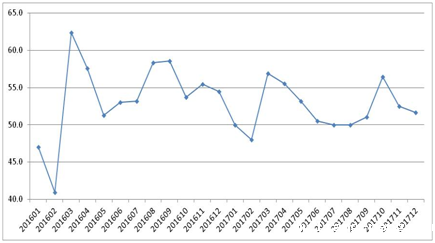 库存周转效率保持较高水平。在去产能的大背景下,社会库存整体保持较低水平,库存周转效率保持高位。2017年中国仓储指数中的平均库存周转次数指数平均为52.1点,全年均处在扩张区间,表明仓储物流企业周转效率持续保持较快增长。