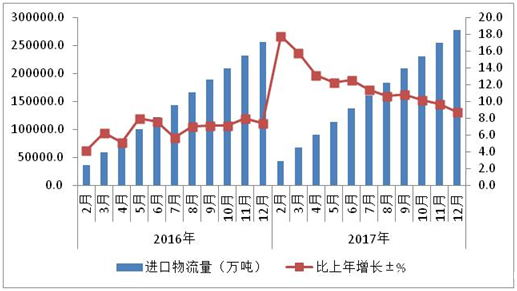 三是进口物流需求形势较好。在全球经济温和复苏,内需稳中向好,彻底扭转了2016年同期大幅下降的局面。全球制造业PMI均值达到54.7%的较高水平。在内外需求总体向好的带动下,进口物流需求保持较快增长,全年增长8.7%,比上年提高1.6个百分点。