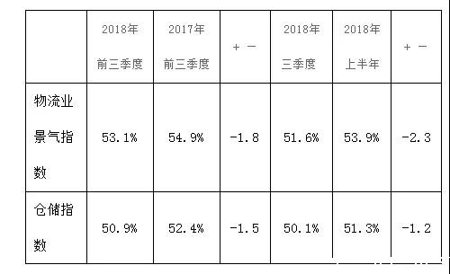 仓储指数,前三季度平均为50.9%,比去年同期回落1.5个百分点,三季度平均为50.1%,比今年上半年均值回落1.2个百分点。