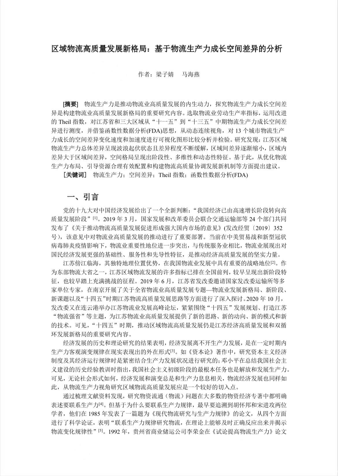 梁子婧 “把脉区域物流高质量发展新格局:物流生产力成长空间差异分析”
