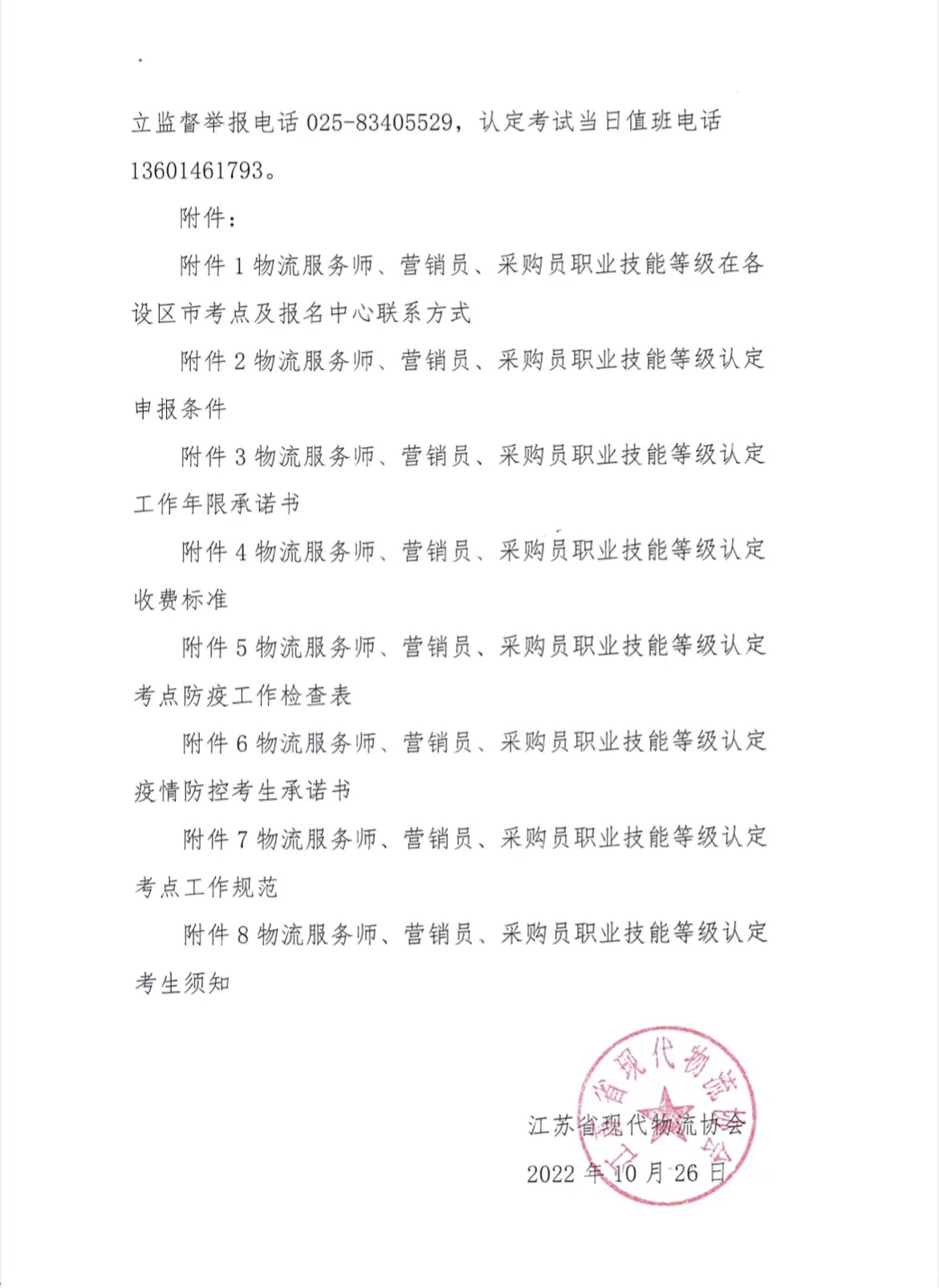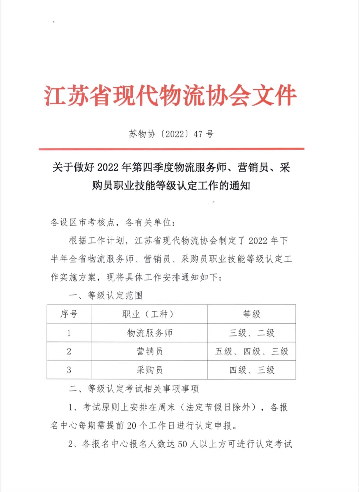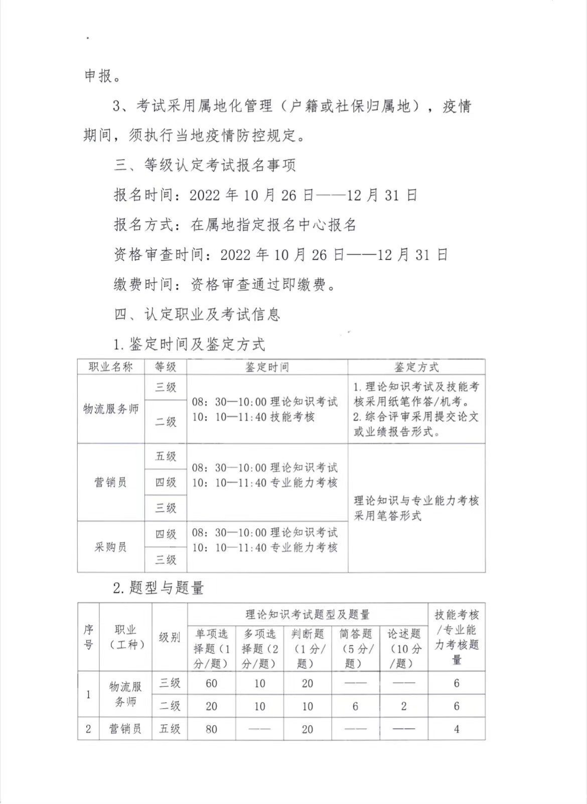 2022年第四季度物流服务师、营销员、采购员职业技能等级认定工作的通知