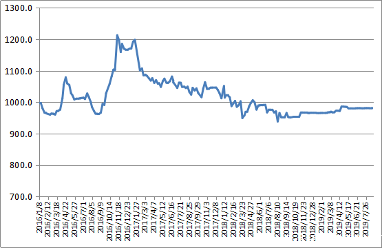 本周(2019年8月19日-8月23日),由中国物流与采购联合会和林安物流集团联合调查的中国公路物流运价指数980.77点,环比回落0.04%。