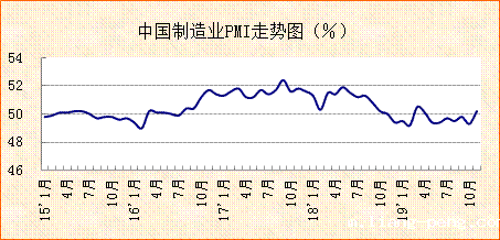 中国物流与采购联合会、国家统计局服务业调查中心发布的2019年11月份中国制造业采购经理指数(PMI)为50.2%,较上月上升0.9个百分点,连续6个月运行在50%以下后回到扩张区间。分项指数显示,本月国内需求扩张,外部需求改善,企业采购和生产活动趋于活跃,市场价格有所下行,就业相对稳定。大部分行业增速有所回升,新动能和消费品保持较好带动作用。综合来看,指数明显回升,经济运行趋稳。